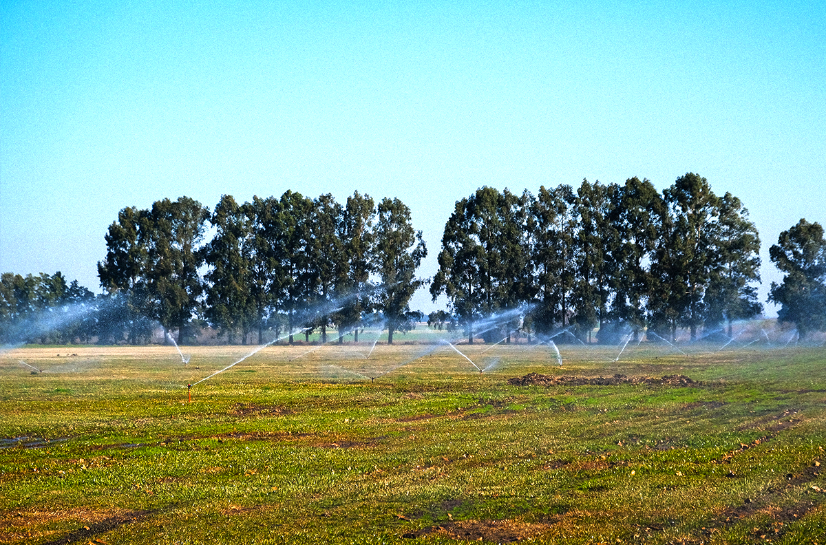 El riego por aspersión fija se basa en una red de cañerías enterradas o semienterradas que alimentan aspersores instalados en posiciones fijas. Estos emisores distribuyen agua en forma de lluvia artificial, cubriendo toda la superficie del cultivo de manera uniforme.